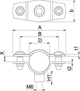 Abstandschelle zur Montage von Rohren und Kabeln an Wand, Decke und Boden. Mit selbstsicherndem Oberteil. Befestigung über Ansatz mit Innengewinde.