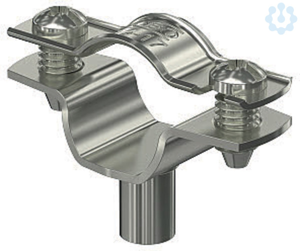 Abstandschelle zur Montage von Rohren und Kabeln an Wand, Decke und Boden. Mit selbstsicherndem Oberteil. Befestigung über Ansatz mit Innengewinde.