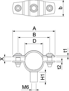 Abstandschelle zur Montage von Rohren und Kabeln an Wand, Decke und Boden. Mit selbstsicherndem Oberteil. Befestigung über Ansatz mit Innengewinde.