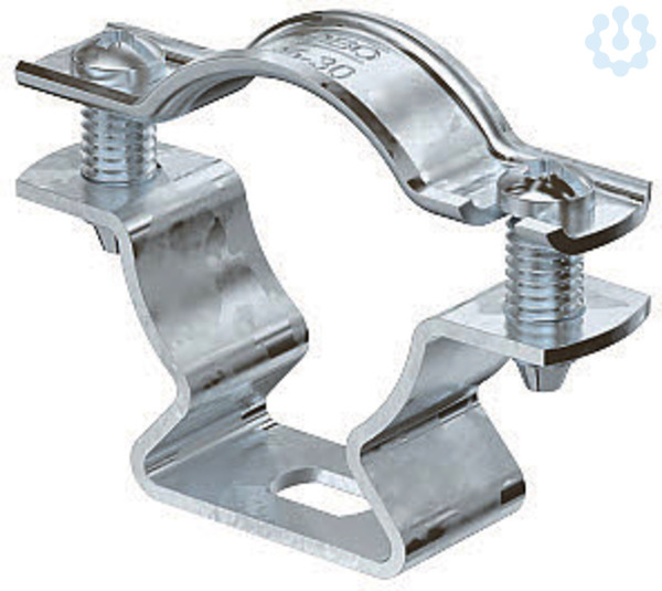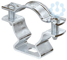 Abstandschelle zur Montage von Rohren und Kabeln an Wand, Decke und Boden. Mit selbstsicherndem Oberteil. Befestigung über Langloch.