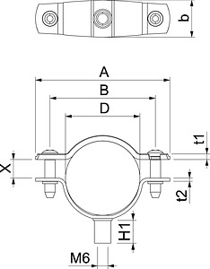Abstandschelle zur Montage von Rohren und Kabeln an Wand, Decke und Boden. Mit selbstsicherndem Oberteil. Befestigung über Ansatz mit Innengewinde. Oberflächen G und FT ab Schellengröße 20 geeignet für Montage mit Nagelgerät oder Bolzensetzgerät.