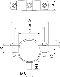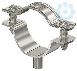 Abstandschelle zur Montage von Rohren und Kabeln an Wand, Decke und Boden. Mit selbstsicherndem Oberteil. Befestigung über Ansatz mit Innengewinde.