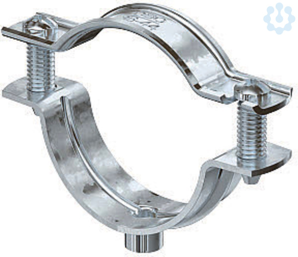 Abstandschelle zur Montage von Rohren und Kabeln an Wand, Decke und Boden. Mit selbstsicherndem Oberteil. Befestigung über Ansatz mit Innengewinde. Oberflächen G und FT ab Schellengröße 20 geeignet für Montage mit Nagelgerät oder Bolzensetzgerät.