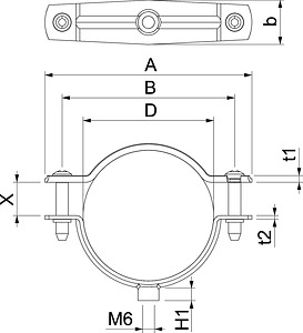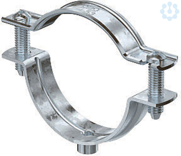Abstandschelle zur Montage von Rohren und Kabeln an Wand, Decke und Boden. Mit selbstsicherndem Oberteil. Befestigung über Ansatz mit Innengewinde. Oberflächen G und FT ab Schellengröße 20 geeignet für Montage mit Nagelgerät oder Bolzensetzgerät.
