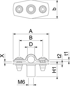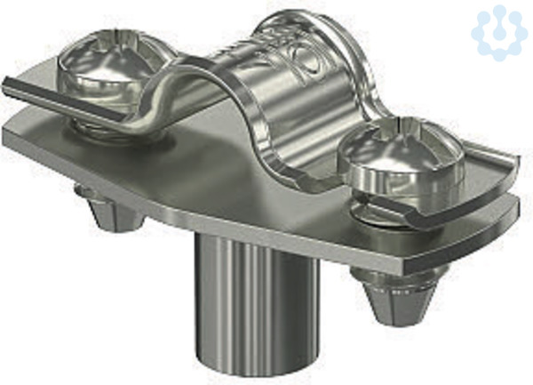 Abstandschelle zur Montage von Rohren und Kabeln an Wand, Decke und Boden. Mit selbstsicherndem Oberteil. Befestigung über Ansatz mit Innengewinde.