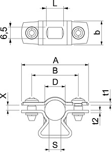 Abstandschelle zur Montage von Rohren und Kabeln an Wand, Decke und Boden. Mit selbstsicherndem Oberteil. Befestigung über Langloch.
