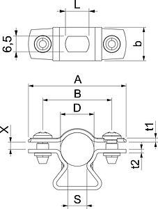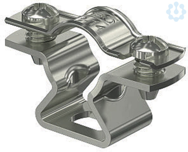 Abstandschelle zur Montage von Rohren und Kabeln an Wand, Decke und Boden. Mit selbstsicherndem Oberteil. Befestigung über Langloch.