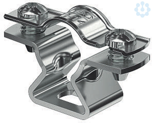 Abstandschelle zur Montage von Rohren und Kabeln an Wand, Decke und Boden. Mit selbstsicherndem Oberteil. Befestigung über Langloch. Ab der Schellengröße 20 geeignet für Montage mit Nagelgerät oder Bolzensetzgerät.