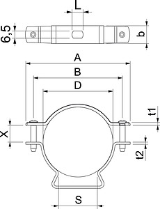 Abstandschelle zur Montage von Rohren und Kabeln an Wand, Decke und Boden. Mit selbstsicherndem Oberteil. Befestigung über Langloch.