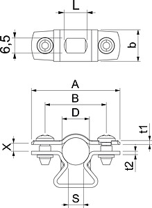 Abstandschelle zur Montage von Rohren und Kabeln an Wand, Decke und Boden. Mit selbstsicherndem Oberteil. Befestigung über Langloch.