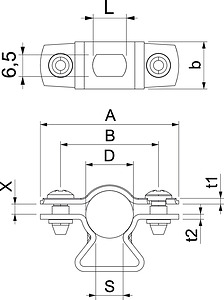 Abstandschelle zur Montage von Rohren und Kabeln an Wand, Decke und Boden. Mit selbstsicherndem Oberteil. Befestigung über Langloch.