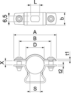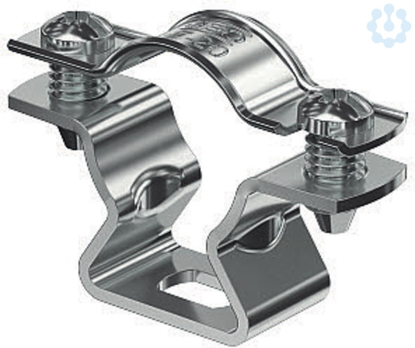 Abstandschelle zur Montage von Rohren und Kabeln an Wand, Decke und Boden. Mit selbstsicherndem Oberteil. Befestigung über Langloch. Ab der Schellengröße 20 geeignet für Montage mit Nagelgerät oder Bolzensetzgerät.