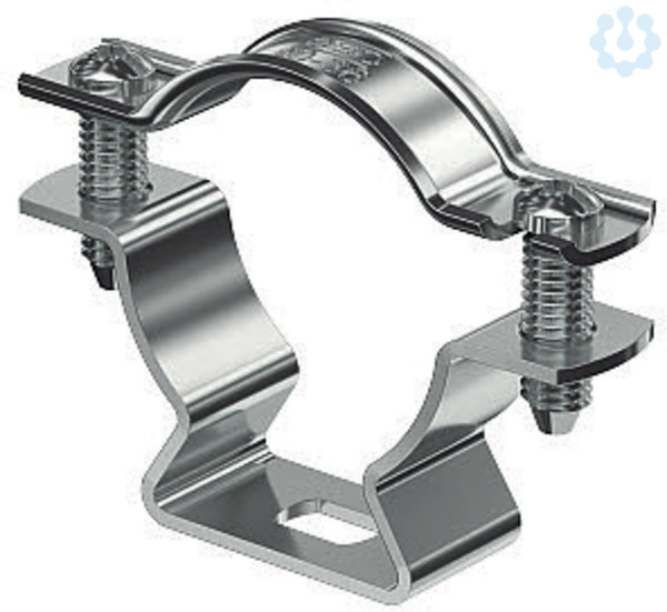 Abstandschelle zur Montage von Rohren und Kabeln an Wand, Decke und Boden. Mit selbstsicherndem Oberteil. Befestigung über Langloch. Ab der Schellengröße 20 geeignet für Montage mit Nagelgerät oder Bolzensetzgerät.