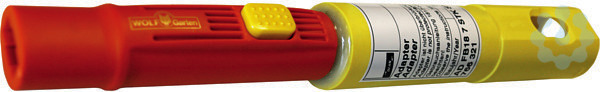Adapter mit Zahnkupplung und Flach-Steckbuchse 18 x 7 mm. Zur Aufnahme von WOLF-Gartengeräten.