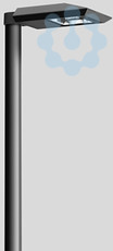 BEGA Aufsatzleuchte 99556K3. Asymmetrisch-bandförmige Lichtstärkeverteilung. Lichtlenkung durch alterungsbeständiges, polymerfreies optisches System. LED, 34,5 W Leuchten-Anschlussleistung, Leuchten-Lichtstrom 4748 lm, Farbtemperatur 3000 K. Farbwiedergabeindex (CRI) > 80. Mit austauschbarem BEGA LED-Modul mit Übertemperaturschutz und einer Lebenserwartung von mindestens 50.000 Betriebsstunden. 20-jährige Nachliefergarantie auf das LED-Modul und die Verschleißteile. Mit LED-Netzteil, DALI steuerbar, 220-240 V, 0/50-60 Hz. Schutzart IP 66, Schutzklasse II. Leuchte aus Aluminiumguss, Aluminium und Edelstahl, Farbe Grafit. Sicherheitsglas entspiegelt. Reflektor aus eloxiertem Reinstaluminium. Werkzeugloser Verschluss. Mit fest angeschlossener Anschlussleitung X05BQ-F 4 x 1 qmm, Länge 8 m. Mastzopfdurchmesser 76 mm, Einstecktiefe 90 mm. Abmessungen: 255 x 60 x 440 mm. Für Lichtpunkthöhen von 5000 - 8000 mm.
