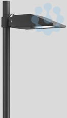 BEGA Aufsatzleuchte 84250K3. Asymmetrische Lichtstärkeverteilung. LED, 106 W Leuchten-Anschlussleistung, Leuchten-Lichtstrom 12579 lm, Farbtemperatur 3000 K. Farbwiedergabeindex (CRI) > 80. Mit austauschbarem BEGA LED-Modul mit Übertemperaturschutz und einer Lebenserwartung von mindestens 50.000 Betriebsstunden. 20-jährige Nachliefergarantie auf das LED-Modul und die Verschleißteile. Mit LED-Netzteil, DALI-steuerbar, 220-240 V, 0/50-60 Hz. Schutzart IP 66. Leuchte aus Aluminiumguss, Aluminium und Edelstahl Beschichtungstechnologie BEGA Unidure® , Farbe Grafit. Sicherheitsglas. Reflektor aus eloxiertem Reinstaluminium. Mit fest angeschlossener Anschlussleitung X05BQ-F 5 G 1 mm², Länge 8 m. Mastzopfdurchmesser 76 mm, Einstecktiefe 95 mm. Anstellwinkel in 10°-Stufen von -30° bis 90° einstellbar. Für Lichtpunkthöhen von 6000-8000 mm. Abmessungen: 315 x 290 x 630 mm.