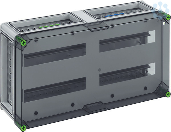 Automatengehäuse, transparent, Schutzart IP65, 56 TE, Schlagfestigkeit IK08, Schutzklasse II, Bemessungsisolationsspannung 400V AC, halogenfrei