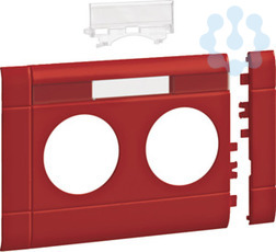 Blende 2-fach Steckdose zu BR 100mm beschriftbar anreihbar halogenfrei rot.Blende modular mit Beschriftungsfeld für Kanalsteckdosen 2-fach, schnittkaschierend und anreihbar.