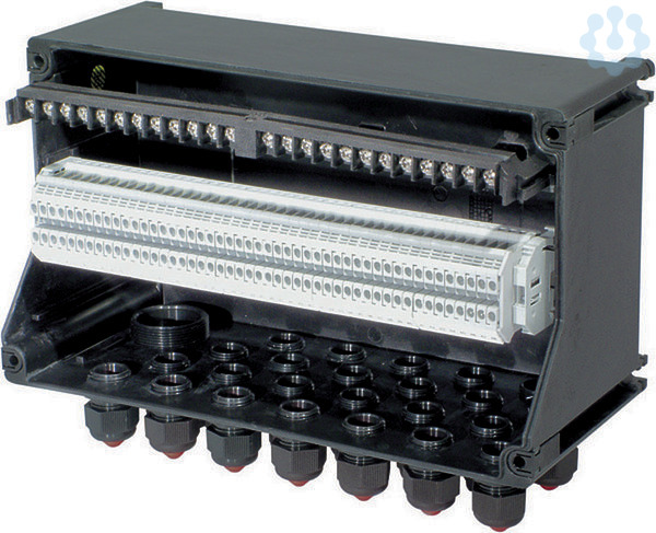 Ex-e Terminal box GHG 721 1 for Zone 1/21, 1 x M40 cable gland, 24x M20 cable gland, direct drilled enclosure48 x 2.5 mm² + 24x2x2.5 mm², 1 PE, screw terminals, enclosure mat.: glass-fibre reinforced polyester