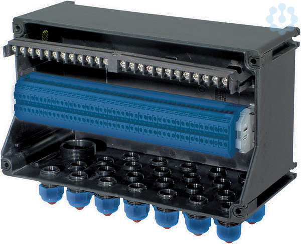 Ex-i Terminal box GHG 721 1 for Zone 1/21, 1 x M40 cable gland, 24x M20 cable gland, direct drilled enclosure48 x 2.5 mm² + 24x2x2.5 mm², 1 PE, screw terminals, enclosure mat.: glass-fibre reinforced polyester