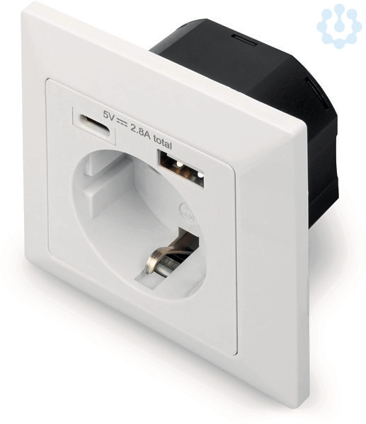 Smartphone aufladen an jeder Steckdose! Mit der DIGITUS® Schutzkontakt-Steckdose können Sie sogar 2 Smartphones zeitgleich aufladen. Laden Sie ein USB-C™ oder USB A Gerät mit bis zu 14 W (5 V / 2,8 A). Laden Sie beispielsweise gleichzeitig Ihr Smartphone und Ihr Tablet mit insgesamt 2,8 A verfügbarem Ladestrom. Schützen Sie sich und Ihre Familie durch die integrierten Shutter in der Steckdose, die einen erhöhten Berührungsschutz gewährleisten und zusätzlich durch den eingebauten elektronischen Kurzschluss- und Überlastschutz der USB-Ports. Rüsten Sie Ihre vorhandene Elektroinstallation auf und kommen Sie in den Genuß, jederzeit Ihre USB-Geräte direkt an der Steckdose aufladen zu können.