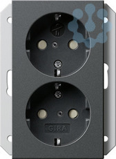 SCHUKO-Doppelsteckdose 16 A 250 V~ mit Shutter für Unterputz-Gerätedose 1fach Anthrazit Passend in jede handelsübliche Gerätedose. Erhöhter Berührungsschutz (Safety Plus) gemäß DIN VDE 0620-1.