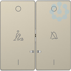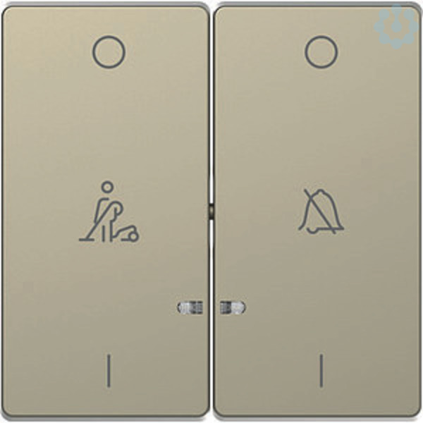 Wippe mit Aufdruck Klingel durchgestrichen/Symbol Reinigungsservice. Zu komplettieren mit Schalter und Taster, 2-fach. Material Thermoplast lackiert. Farbe Sahara.