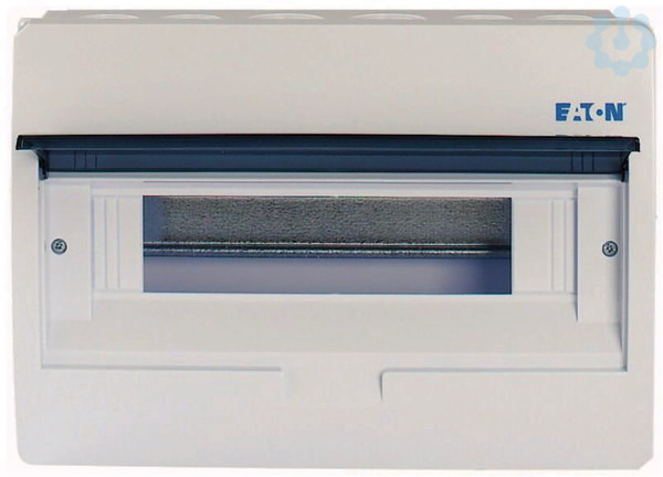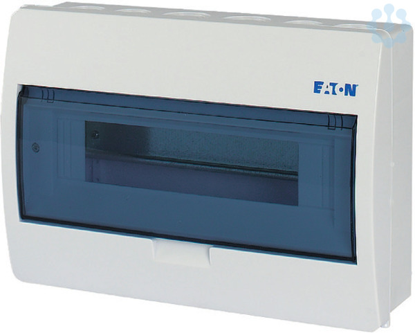 ECO Kleinverteiler, Aufputz, weiß RAL9003, Schutzart IP40 nach IEC/EN 62208, 12 Teilungseinheiten, 1-reihig, Schutzklasse 2 totalisoliert, für den Bau von Installationsverteilern nach IEC/EN 61439-3 VDE 0660-600-3 zugelassen, Gehäuse komplett aus ABS, zum Einbau von Schalt- und Schutzgeräten nach Maßnorm DIN 43 880 mit 70 mm Einbautiefe, AC 400 V, RoHs-konform, Bestehend aus Kunststoffunterteil mit Hutprofilschiene aus verzinktem Stahlblech, fingersichere Neutral- und Schutzleiterklemme IP2X, Vorprägung für metrische Leitungseinführungen oben und unten, Oberteil mit 46 mm Geräteöffnung, transparente Klappe frontbündig mit Arretierung in Position Offen, Gehäuseoberteil mit Schraubverschlüssen, Oberteil mit Unterteil plombierbar, inklusive Beschriftungsstreifen.