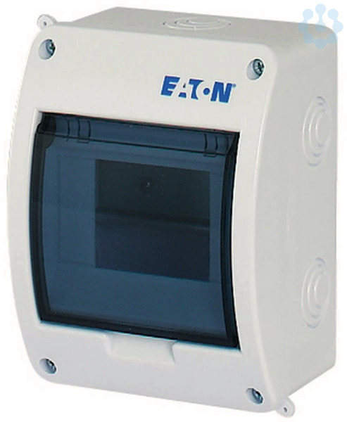 ECO Kleinverteiler, Aufputz, weiß RAL9003, Schutzart IP40 nach IEC/EN 62208, 5 Teilungseinheiten, 1-reihig, Schutzklasse 2 totalisoliert, für den Bau von Installationsverteilern nach IEC/EN 61439-3 VDE 0660-600-3 zugelassen, Gehäuse komplett aus ABS, zum Einbau von Schalt- und Schutzgeräten nach Maßnorm DIN 43 880 mit 70 mm Einbautiefe, AC 400 V, RoHs-konform, Bestehend aus Kunststoffunterteil mit Hutprofilschiene aus verzinktem Stahlblech, fingersichere Neutral- und Schutzleiterklemme IP2X, Vorprägung für metrische Leitungseinführungen oben und unten, Oberteil mit 46 mm Geräteöffnung, transparente Klappe frontbündig mit Arretierung in Position Offen, Gehäuseoberteil mit Schraubverschlüssen, Oberteil mit Unterteil plombierbar, inklusive Beschriftungsstreifen.