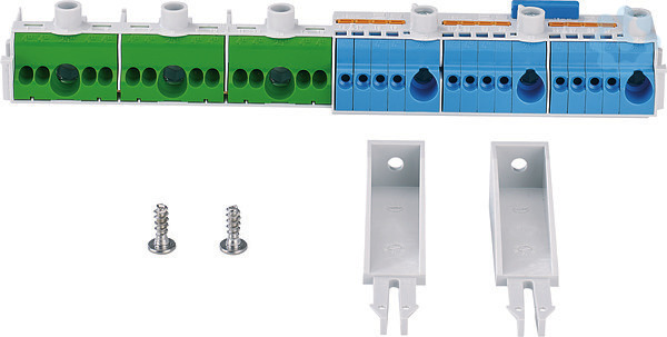 PE- und N-Klemme je PE/N 3 x 25 mm², 12 x 4 mm² PE und 12 x 6 mm² N für ENYSTAR-Gehäuse. FIXCONNECT NT-Steckklemmentechnik für Kupferleiter mit N-Trennklemmen. N trennbar, bis zu 2 unterschiedliche Potenziale.