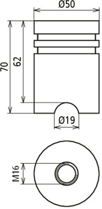 Edelstahl-Erdungsbrücke NIRO mit Gewinde M16 D 50mm H 70mm