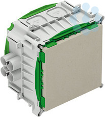 Einbaugehäuse, für Fertigteilbau, halogenfrei, zum Einbau von NV/HV/LED-Leuchten und Lautsprechern, Melde- und Rufsystemen, für die Installation von VDE geprüften Leuchten nach DIN EN 60598 (VDE 0711), sowie mit F-Kennzeichnung oder MM-Kennzeichnung, mit Schutzart IP30, Bemessungsisolationsspannung: 400V AC, halogenfrei, maximale Einbauhöhe für Leuchten, Lautsprecher, Melde und Rufsystemen: 100mm, Lampenleistung LED max. 20 W, Lampenleistung Halogen max. 50 W, zusätzliche Einführungen 4 x bis M40, Auslassöffnung: Fermacell(R)-Platte, variabel bis max. 150 x 150mm, 8 Kombi-Rohr-Einführungen 4 x M20, 4 x M25 integrierte Rohrstopper und Zugentlastung für Rohre M20, M25, Klebebefestigung oder Nagelbefestigung, Kombirohreinführungen und Membran zum Lochen, Dichtbereich M16-M40