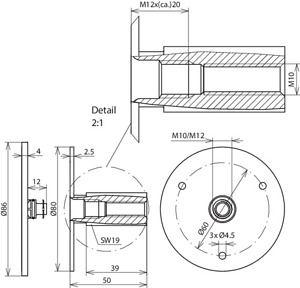 | Gewindemaß Innengewinde (metrisch) | M10 / M12 |