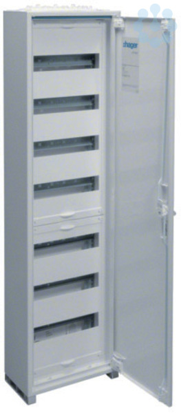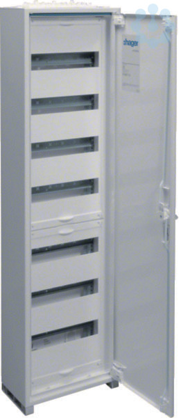 Feldvert. AP, univers, IP44, SKII, 84PLE, 1x7 Reihen1100x300x161mm, ohne Klemme.Feldverteiler nach DIN EN 61 439-1/-3, Maßnorm nach DIN 43 870. Zum Einbau für Geräte bis 125 A, Luft- und Kriechstrecken nach DIN EN 60664-1. Bestehend aus Schrank mit Tür aus pulverbeschichtetem und eingebranntem Stahlblech. Ab Schrankbreite 800 mm (3-feldig) zwei türiger Aufbau. Rechte Türen maximal 2-feldig breit. Komplettschrank mit Einbausatz bestückt mit profilierten Tragschienen, 7,5 mm hohen Hutschienen in 125 mm Mittenabstand und passenden Berührungsschutzabdeckungen, ohne PE/N-QuickConnect-Klemmen und ohne Träger. Leitungseinführungen oben/unten durch herausnehmbare flexiblen Kunststoffflanschplatten, zusätzlich austauschbar. Tür mit innenliegenden justierbaren Scharnieren und einem Öffnungswinkel von 110°. Türen rechts und links anschlagbar, werkzeugloser wechselbar Türanschlag. Türverschluss serienmäßig mit Dreipunkt-Stangenverschluss und plombierbaren Klappgriff. Austauschbare sperrbare Schließsysteme und Türen, siehe Zubehör.