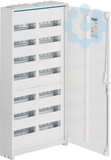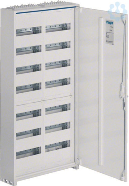 Feldvert. AP, univers, IP44, SKII, 168PLE, 2x7 Reihen, 1150x550x161mm, o. Klemme.Feldverteiler nach DIN EN 61 439-1/-3, Maßnorm nach DIN 43 870. Zum Einbau für Geräte bis 125 A, Luft- und Kriechstrecken nach DIN EN 60664-1. Bestehend aus Schrank mit Tür aus pulverbeschichtetem und eingebranntem Stahlblech. Ab Schrankbreite 800 mm (3-feldig) zwei türiger Aufbau. Rechte Türen maximal 2-feldig breit. Komplettschrank mit Einbausatz bestückt mit profilierten Tragschienen, 7,5 mm hohen Hutschienen in 125 mm Mittenabstand und passenden Berührungsschutzabdeckungen, ohne PE/N-QuickConnect-Klemmen und ohne Träger. Leitungseinführungen oben/unten durch herausnehmbare flexiblen Kunststoffflanschplatten, zusätzlich austauschbar. Tür mit innenliegenden justierbaren Scharnieren und einem Öffnungswinkel von 110°. Türen rechts und links anschlagbar, werkzeugloser wechselbar Türanschlag. Türverschluss serienmäßig mit Dreipunkt-Stangenverschluss und plombierbaren Klappgriff. Austauschbare sperrbare Schließsysteme und Türen, siehe Zubehör.