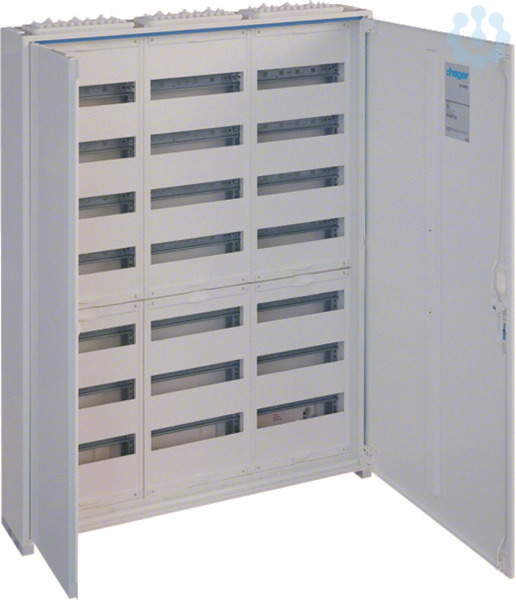 Feldvert. AP, univ., IP44, SKII, 252PLE, 3x7 Reihen, 1100x800x161mm, ohne Klemme.Feldverteiler nach DIN EN 61 439-1/-3, Maßnorm nach DIN 43 870. Zum Einbau für Geräte bis 125 A, Luft- und Kriechstrecken nach DIN EN 60664-1. Bestehend aus Schrank mit Tür aus pulverbeschichtetem und eingebranntem Stahlblech. Ab Schrankbreite 800 mm (3-feldig) zwei türiger Aufbau. Rechte Türen maximal 2-feldig breit. Komplettschrank mit Einbausatz bestückt mit profilierten Tragschienen, 7,5 mm hohen Hutschienen in 125 mm Mittenabstand und passenden Berührungsschutzabdeckungen, ohne PE/N-QuickConnect-Klemmen und ohne Träger. Leitungseinführungen oben/unten durch herausnehmbare flexiblen Kunststoffflanschplatten, zusätzlich austauschbar. Tür mit innenliegenden justierbaren Scharnieren und einem Öffnungswinkel von 110°. Türen rechts und links anschlagbar, werkzeugloser wechselbar Türanschlag. Türverschluss serienmäßig mit Dreipunkt-Stangenverschluss und plombierbaren Klappgriff. Austauschbare sperrbare Schließsysteme und Türen, siehe Zubehör.