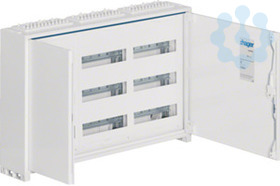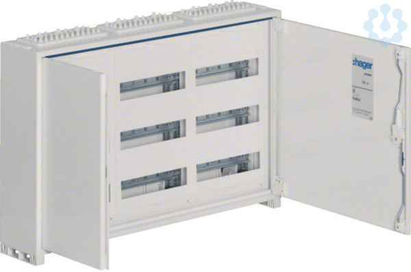 Feldvert. AP, univers, IP44, SKII, 108PLE, 3x3 Reihen 500x800x161mm, ohne Klemme.Feldverteiler nach DIN EN 61 439-1/-3, Maßnorm nach DIN 43 870. Zum Einbau für Geräte bis 125 A, Luft- und Kriechstrecken nach DIN EN 60664-1. Bestehend aus Schrank mit Tür aus pulverbeschichtetem und eingebranntem Stahlblech. Ab Schrankbreite 800 mm (3-feldig) zwei türiger Aufbau. Rechte Türen maximal 2-feldig breit. Komplettschrank mit Einbausatz bestückt mit profilierten Tragschienen, 7,5 mm hohen Hutschienen in 125 mm Mittenabstand und passenden Berührungsschutzabdeckungen, ohne PE/N-QuickConnect-Klemmen und ohne Träger. Leitungseinführungen oben/unten durch herausnehmbare flexiblen Kunststoffflanschplatten, zusätzlich austauschbar. Tür mit innenliegenden justierbaren Scharnieren und einem Öffnungswinkel von 110°. Türen rechts und links anschlagbar, werkzeugloser wechselbar Türanschlag. Türverschluss serienmäßig mit Dreipunkt-Stangenverschluss und plombierbaren Klappgriff. Austauschbare sperrbare Schließsysteme und Türen, siehe Zubehör.