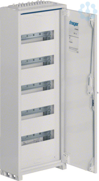 Feldvert. AP, univers, IP44, SKII, 60PLE, 1x5 Reihen, 800x300x161mm, ohne Klemme.Feldverteiler nach DIN EN 61 439-1/-3, Maßnorm nach DIN 43 870. Zum Einbau für Geräte bis 125 A, Luft- und Kriechstrecken nach DIN EN 60664-1. Bestehend aus Schrank mit Tür aus pulverbeschichtetem und eingebranntem Stahlblech. Ab Schrankbreite 800 mm (3-feldig) zwei türiger Aufbau. Rechte Türen maximal 2-feldig breit. Komplettschrank mit Einbausatz bestückt mit profilierten Tragschienen, 7,5 mm hohen Hutschienen in 125 mm Mittenabstand und passenden Berührungsschutzabdeckungen, ohne PE/N-QuickConnect-Klemmen und ohne Träger. Leitungseinführungen oben/unten durch herausnehmbare flexiblen Kunststoffflanschplatten, zusätzlich austauschbar. Tür mit innenliegenden justierbaren Scharnieren und einem Öffnungswinkel von 110°. Türen rechts und links anschlagbar, werkzeugloser wechselbar Türanschlag. Türverschluss serienmäßig mit Dreipunkt-Stangenverschluss und plombierbaren Klappgriff. Austauschbare sperrbare Schließsysteme und Türen, siehe Zubehör.