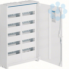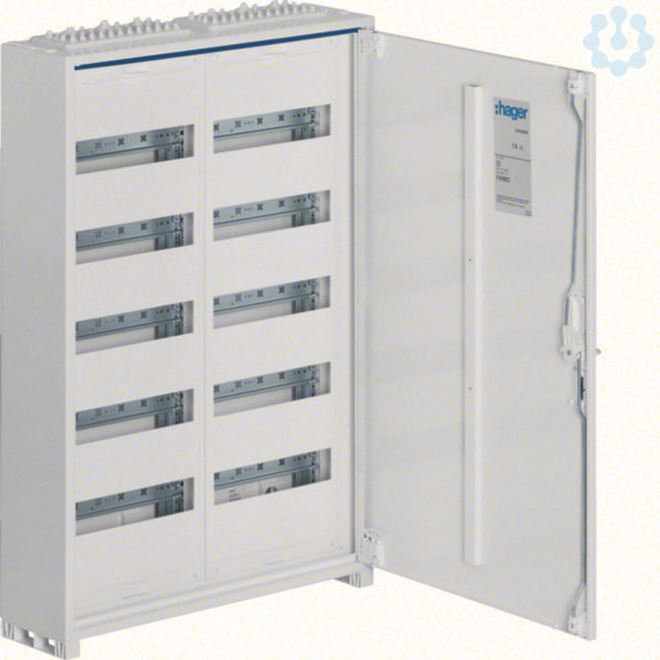 Feldvert. AP, univers, IP44, SKII, 120PLE, 2x5 Reihen, 800x550x161mm, o. Klemme.Feldverteiler nach DIN EN 61 439-1/-3, Maßnorm nach DIN 43 870. Zum Einbau für Geräte bis 125 A, Luft- und Kriechstrecken nach DIN EN 60664-1. Bestehend aus Schrank mit Tür aus pulverbeschichtetem und eingebranntem Stahlblech. Ab Schrankbreite 800 mm (3-feldig) zwei türiger Aufbau. Rechte Türen maximal 2-feldig breit. Komplettschrank mit Einbausatz bestückt mit profilierten Tragschienen, 7,5 mm hohen Hutschienen in 125 mm Mittenabstand und passenden Berührungsschutzabdeckungen, ohne PE/N-QuickConnect-Klemmen und ohne Träger. Leitungseinführungen oben/unten durch herausnehmbare flexiblen Kunststoffflanschplatten, zusätzlich austauschbar. Tür mit innenliegenden justierbaren Scharnieren und einem Öffnungswinkel von 110°. Türen rechts und links anschlagbar, werkzeugloser wechselbar Türanschlag. Türverschluss serienmäßig mit Dreipunkt-Stangenverschluss und plombierbaren Klappgriff. Austauschbare sperrbare Schließsysteme und Türen, siehe Zubehör.
