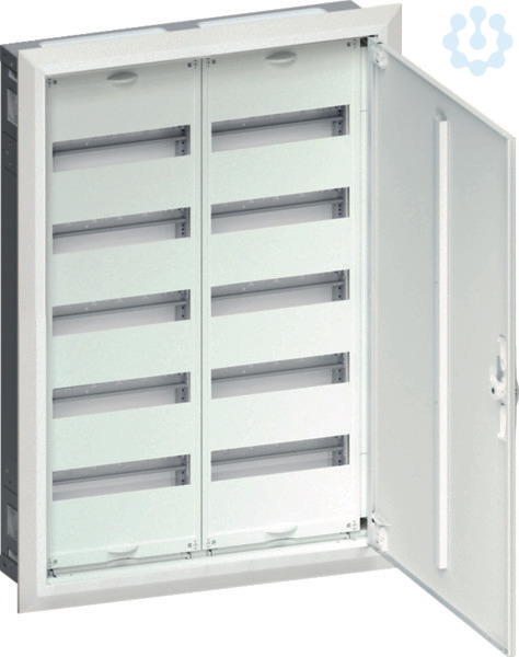 Feldverteiler UP 120PLE mit univers, IP30, SKII, Nischenmaße 807x565x115mm.Feldverteiler UP/HW zertifiziert nach DIN EN 61 439-1/-3, Maßnorm nach DIN 43 870. Zum Einbau von Geräten bis 125 A, Luft- und Kriechstrecken nach DIN EN 60664-1, Schutzart IP30. Bestehend aus Schrank, Blendrahmen und Stahlblechtür, pulverbeschichtet in RAL 9010 (reinweiß). Komplettverteiler mit Einbausatz bestückt mit profilierten Tragschienen, 7,5mm hohen Hutschienen in 125 mm Mittenabstand und passenden Berührungsschutzabdeckungen (SKII) aus Kunststoff, ohne QuickConnect-Klemmblöcke. Leitungseinführungen oben/unten durch herausnehmbare Kunststoffflanschplatten mit Vorprägungen und integrierte Kabelzugentlastung. Seitlich und hinten ausschlagbare Leistungseinführungen. Tür mit innenliegenden justierbaren Scharnieren und einem Öffnungswinkel von 110°. Türen rechts und links anschlagbar, werkzeuglos wechselbarer Türanschlag. Türverschluss serienmäßig mit Vorreiber und Klappgriff plombierbar. Ab Schrankbreite 800 mm (3-feldig) zweitüriger Aufbau. Rechte Türen maximal 2 Felder breit. Bei Doppeltür mit Stangenverschluss. Blendrahmen Tiefe bzw. Überstand 13 mm. Hinweise: Austauschbare Schließsysteme möglich.