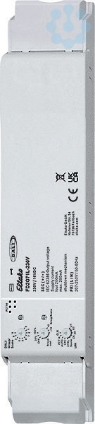 Funk-DALI2-Gateway, bidirektional. Stand-by-Verlust 2 Watt. Montage zum Beispiel in Zwischendecken und Leuchten. 252mm lang, 46mm breit und 31mm hoch. Mit Kabel-Zugentlastung. Versorgungsspannung 230V an den Klemmen N und L. An den Klemmen DALI +/- werden 16V DC/130mA für bis zu 64 Stück DALI-Geräte bereitgestellt. Mit dem Gateway FDG71L werden DALI-Geräte mit EnOcean-Funksendern angesteuert. Es können die Gruppen 0-15 angesteuert und auch der Broadcastbefehl abgesetzt werden. Außerdem können die DALI-Szenen 0-15 angesteuert werden. DALI-Installationen, die mit dem FDG71L komplett angesteuert werden sollen, müssen also in Gruppen 0-15 konfiguriert sein. Das FGD71L speichert intern den Dimmwert für jede der Gruppen 0-15 und stellt diesen Wert als Rückmeldung bereit. Es werden dabei die selben Rückmeldetelegramme erzeugt, wie bei einem FUD71. Die Rückmeldungen der Geräteadressen entsprechen dabei in aufsteigender Reihenfolge den Dimmwerten der DALI-Gruppen 0-15. Die Rückmeldungen können mit PCT14 individuell pro Gruppe von Dimmwert-Telegramm (%) auf Taster-Telegramm (ein/aus) umgestellt werden. Somit können mit den Rückmeldungen Aktoren angesteuert werden. Das FDG71L erfüllt die Funktionen des DALI-Masters und der DALI-Stromversorgung. Achtung: Funktaster erfordern beim manuellen Einlernen in das FDG71L immer einen Doppelklick! Bei CLR genügt ein Einfachklick. Ein Richtungstaster oder Universaltaster mit gleicher ID und gleicher Taste kann nicht mehrfach in unterschiedliche Gruppen eingelernt werden. Es gilt immer die zuletzt ausgewählte Gruppe. Ein Taster kann also entweder nur eine Gruppe oder mit Broadcast alle Gruppen schalten. Pro Gruppe kann auch ein FBH eingelernt werden. Bei manuellem Einlernen wirkt dieser immer helligkeitsunabhängig. Mit PCT14 kann man auch die Helligkeitsschwelle einstellen. Für die FBH aller Gruppen kann die Verzögerungszeit für die Abschaltung nach Nicht-Bewegung gemeinsam in Minuten (1..60) eingestellt werden. Default sind 3 Minuten.