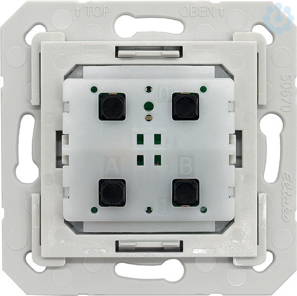 Funktaster-Einsatz mit 4-Kanal-Tastermodul, verschlüsselbar. Sehr leise und mit Batterie (Lebensdauer 5-7 Jahre). Im Lieferumfang enthalten sind eine Halteplatte und ein Befestigungsrahmen für FT55 mit eingesetztem Taster-Modul FTE215B inklusive Batterie CR2032. Funktaster mit einer Wippe können zwei auswertbare Signale senden, Funktaster mit Doppelwippe können vier auswertbare Signale senden. Den Isolierstreifen vor der Inbetriebnahme herausziehen.