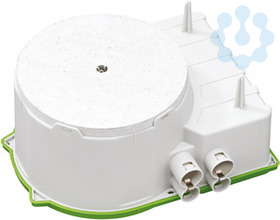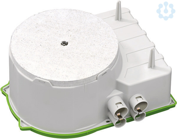Gehäuse, für Fertigteilbau, zum Einbau von NV/HV/LED-Leuchten und Lautsprechern, für die Installation von VDE geprüften Leuchten nach DIN EN 60598 (VDE 0711), sowie mit F-Kennzeichnung oder MM-Kennzeichnung, maximale Einbauhöhe NV-Leuchten: 105mm, HV-Leuchten: 110mm, Lampenleistung max. 50W / LED 25W, mit zusätzlichem Anschlussraum, (z.B. zum Einbau eines elektronischen Sicherheitstransformators bis max. 150 VA), mit Schutzart IPX4, Bemessungsisolationsspannung: 400V AC, halogenfrei, Auslassöffnung: Fermacell(R)-Platte, variabel bis max. Ø 150mm, 8 Kombi-Rohr-Einführungen 4 x M20, 4 x M25, integrierte Rohrstopper und Zugentlastung für Rohre M20, M25, Klebebefestigung oder Nagelbefestigung, Integrierte Rohradapter, Dichtbereich M20-M25