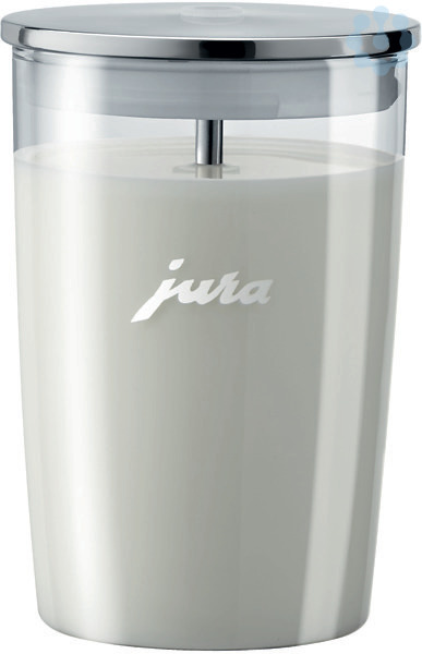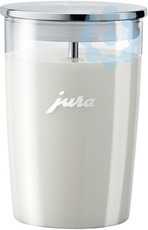 Milchbehälter mit 0,5 l Volumen, spülmaschinentauglich, bequem und einfach zu reinigen; Perfekt auf die Designsprache von JURA abgestimmt, lässt er sich leicht im Kühlschrank verstauen und bei Bedarf an den Vollautomaten anschließen. Vollautomaten anschließen.