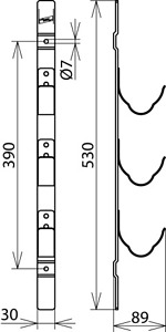 Haltevorrichtung für 3 HH-Sicherungen - Einzelteil . Bohrungen Ø7 mm für einfache Wandmontage.