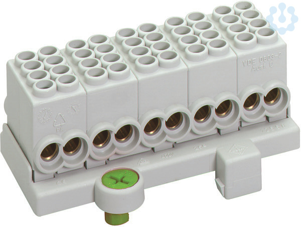 Hauptleitungsabzweigklemme mit 4 Klemmstellen 1,5-25mm² je Pol, 5-polig-fingersicher