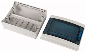 IKA Feuchtraumkleinverteiler RAL7035, mit Neutral- und Schutzleiterklemme, CNC geschäumte Dichtung für Schutzart IP65 nach IEC/EN 62208, 12 Teilungseinheiten, 1-reihig, UV stabil nach DIN EN ISO 4892-2, für den Bau von Installationsverteilern nach IEC/EN 61439-3 VDE 0660-600-3 zugelassen, integrierte Modulkompensation für unterschiedliche Gerätebreiten, metrische Leitungsvorprägungen mit Zentrierungspunkt, Gehäuse komplett aus Polycarbonat (UV-beständig), zum Einbau von Schalt- und Schutzgeräten nach Maßnorm DIN 43 880 mit 70 mm oder 85 mm Einbautiefe, AC 1000 V, DC 1500 V, RoHs-konform, Bestehend aus Kunststoffunterteil mit Hutprofilschiene aus verzinktem Stahlblech, Hutschiene tiefenverstellbar in 2 Positionen, direkt Montage Wandbefestigungslöcher, fingersichere Neutral- und Schutzleiterklemme IP2X, Vorprägung für metrische Leitungseinführungen oben und unten, seitliche Vorprägungen für Verbindungselemente zur Verbindung von zwei oder mehreren Gehäusen nebeneinander, Oberteil mit 46 mm Geräteöffnung, transparente Tür frontbündig, rechts oder links anschlagbar, Türanschlag nachträglich einfach vor Ort wechselbar ohne das Gehäuseoberteil zu entnehmen, Gehäuseoberteil mit plombierbaren Schnellverschlüssen, Tür abschließbar mit Zubehör LOCK-KIT-IKA, Tür plombierbar, inklusive Leerplatzabdeckung und Beschriftungsstreifen.
