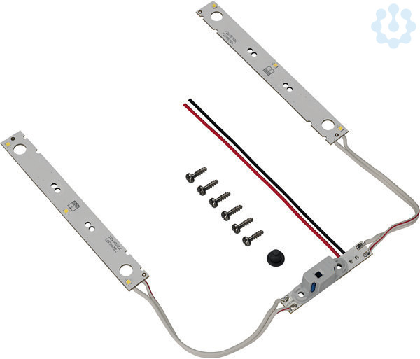 Innenbeleuchtungs-Set zur Beleuchtung des Innenraumes von GEOS-S-Schaltschränken. Vorverdrahtete LED-Module zur verdeckte Montage im Rahmen inklusive Türkontaktschalter und Montagezubehör. Betriebsspannung: 12-24V DC, für GEOS-S 3030
