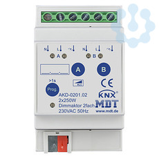 KNX Dimmaktor 2-fach, 3TE REG, 250 W, 230 V AC mit Wirkleistungsmessung