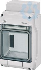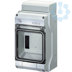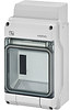 Kleinverteiler aus hochwertigem Thermoplast (Polycarbonat). Für Aufputz-Anwendungen für die ungeschützte Installation im Freien oder in Gebäuden. Automatengehäuse, mit 4,5 Teilungseinheiten, zum Einbau von Geräten mit Schnappbefestigung auf DIN-Tragschiene. Kabeleinführung erfolgt über metrische Vorprägungen. Mit transparenter Klappe, Kabeleinführungsblende und ausbrechbarem Geräteausschnitt. Schutzart IP 65.